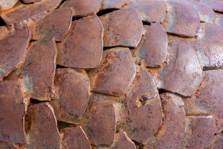 pattern military medieval armor from a row of iron plates old and rusty background