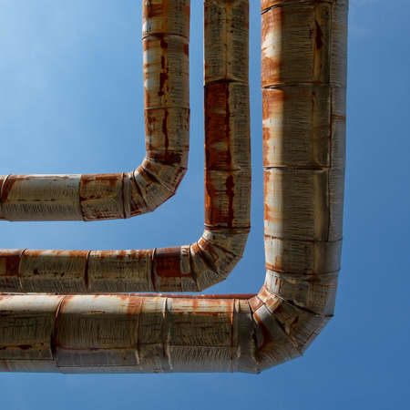 Rusty metal pipes of oil and gas industry. Industrial background.