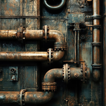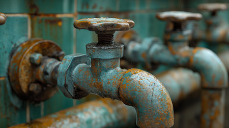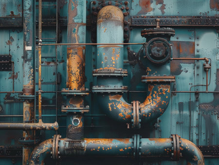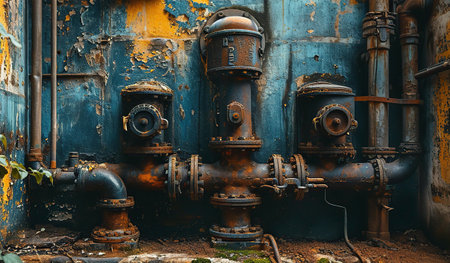 Vintage photography of rusty industrial pipes capturing the essence of decay and abandonment