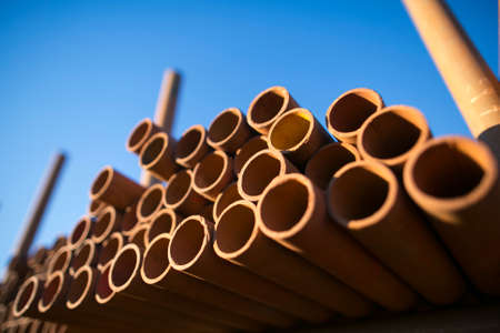 Large number of metal pipes and end view