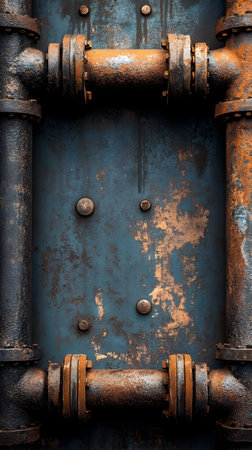 An artistic composition featuring rusty metal pipes against a beautifully textured rust background, ideal for industrial themes or creative design projects.