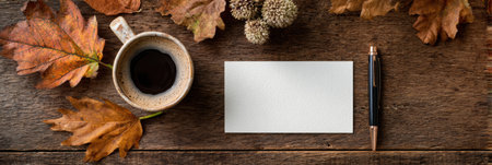 composition with autumn leaves with paper card