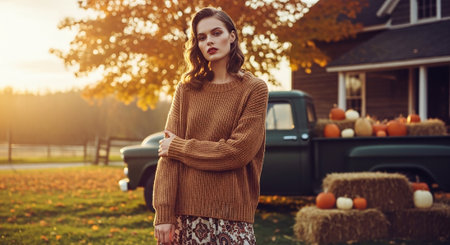 Autumn street background with rustic pumpkins and seasonal charm
