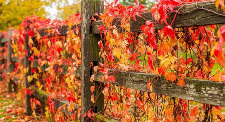 Autumn leaves on a fence in the countryside of Bavaria, Germany