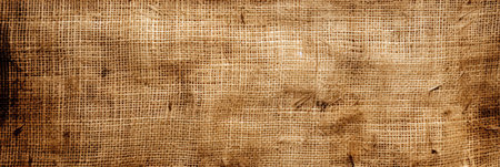 Detailed close-up of rustic burlap fabric showing its rough woven texture, coarse fibers, and earthy brown tones, emphasizing its natural and rugged appearance.