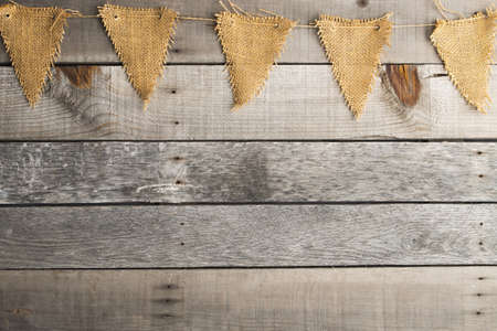 Burlap hessian or sacking on wooden background