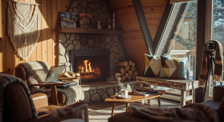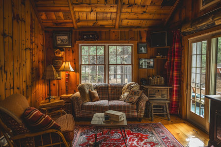 cosy cabin interior with wooden walls