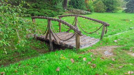 outdoor old wooden bridge for foot walk