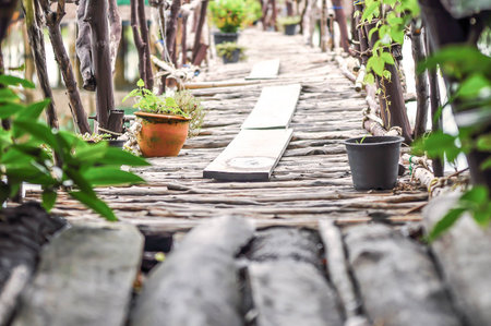 Wood Bridge way walk and flowerpot at beside looking classic