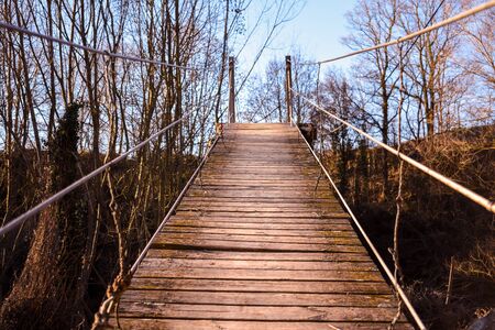 Old Suspension Bridge in the Forest. Adventure and Nature Concept