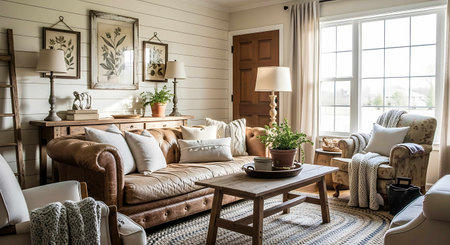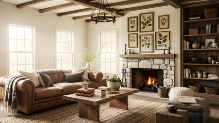 Rustic farmhouse interiors, cozy and inviting textures
