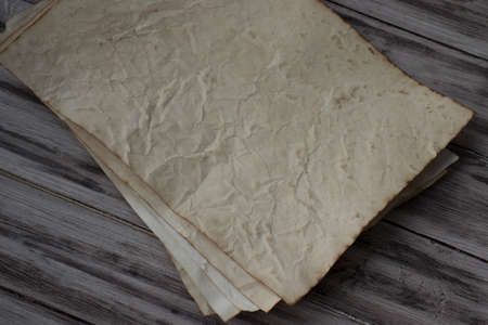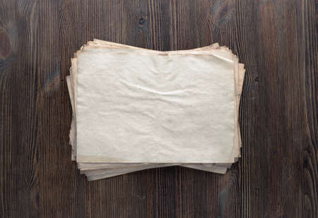 stack of old papers on dirty wooden background