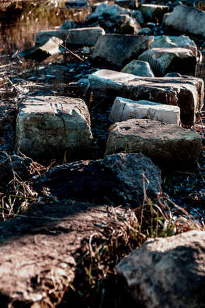 Old stone path, stony road, vertical background
