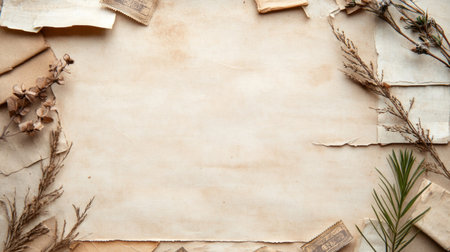 A vintage paper background with dried plants and copy space, perfect for adding text or other elements.