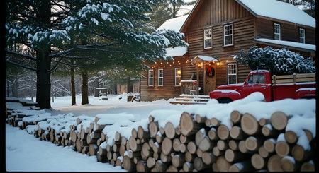 Christmas and New Year holidays in the village. Wooden house in the village.