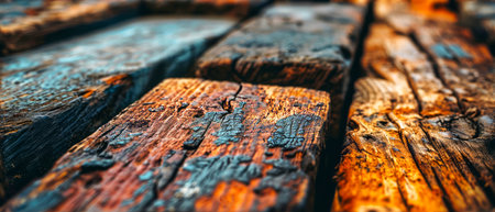 Close-up image highlighting the rich textures and colors of old, rustic wooden planks with signs of weathering and age.