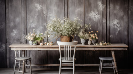 Charming vintage wooden furniture featuring a vase of dried flowers, creating a rustic ambiance. Perfect for home decor inspiration and warm interior compositions.