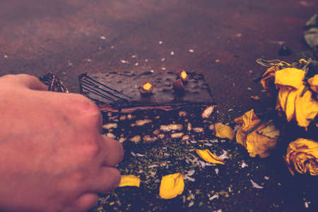 A rustic wooden chest adorned with dried plants and books, set in a cozy, vintage ambiance.