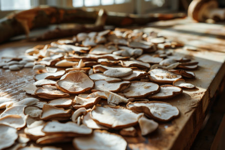 sliced mushrooms for drying lie on the table