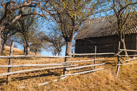 old wooden fence damaged in the wild, Fantanele village area, Sibiu county, Romania