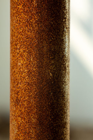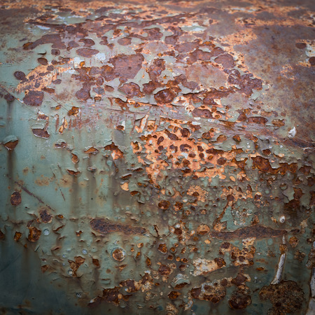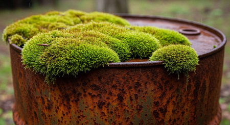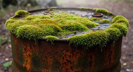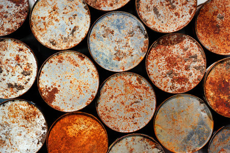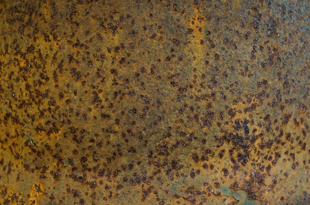 Close-up of heavy corrosion and oxidized metal on an old industrial oil drum.