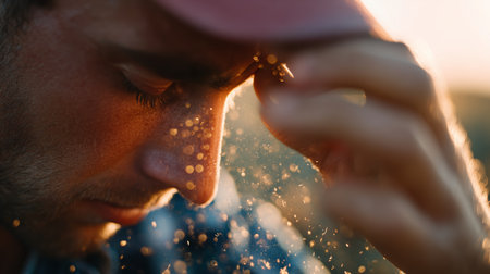 person visibly tired and sweating. generative ai