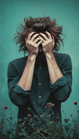 A person fighting through various mental health conditions expressing deep emotions. Concept Mental health struggles, Emotional expression, Inner turmoil, Vulnerability, Personal growth