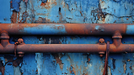 An artistic composition featuring rusty metal pipes against a beautifully textured rust background, ideal for industrial themes or creative design projects.
