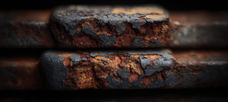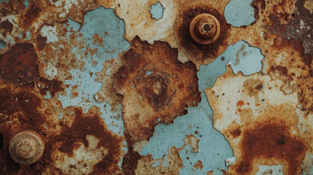 This close-up photo showcases the unique textures and weathered appearance of a vintage, rusted metal surface, A macro study of a rusted metal surface, AI Generated