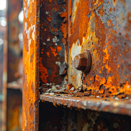 the captivating textures and intricate patterns that emerge from rust on metal surfaces in industrial settings. The play of light and shadow accentuates the organic beauty found in the decayed layers