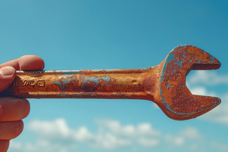 Hand holding wrench as symbol of labor day greeting card professional photography