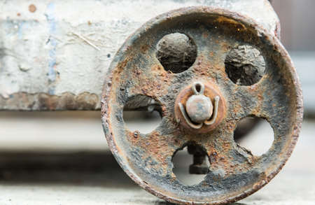 old rusty metal wheel closeup detail view