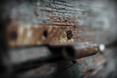 Close-up of rusty metal fasteners on industrial equipment, showcasing the texture and decay typical in machinery. Perfect for industrial themes.
