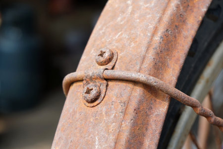 close up rusty nut on old bike