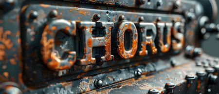 Closeup of vintage grungy metal typeset word CHORUS backdrop 3D rendered stock image for online banner ads. Concept Vintage Typography, Grungy Metal, Typeset Word, CHORUS Backdrop, 3D Rendered
