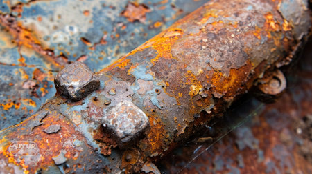 This close-up photo showcases rusted pipes with visible rust, highlighting their deteriorated condition, Detailed close-up of a corroded pipeline, AI Generated