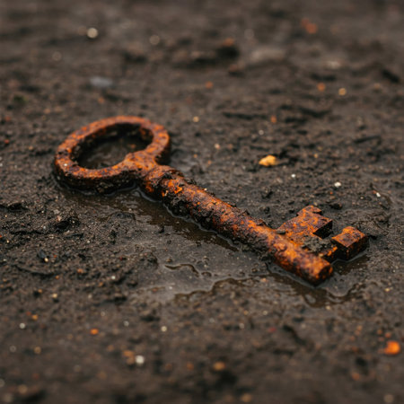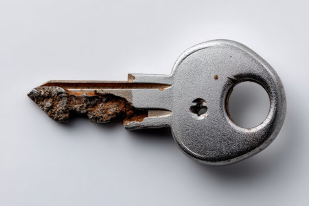 Stunning macro shot of a rusty broken key, showcasing texture and detail. Perfect for website articles and security themes.