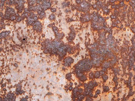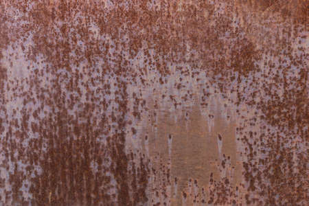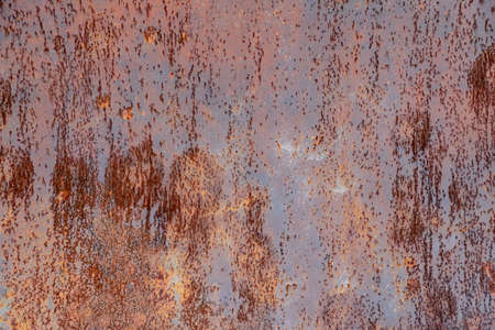 Metal surface with large rust spots, close up. Texture of metallic corrosion. Rusty background