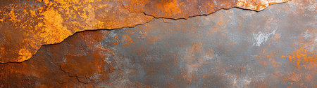 Panoramic view of a rusty metallic surface, showcasing the effects of time and weathering