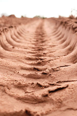 Growing an economy from the ground up. Shot of a sandy furrow on a farm.