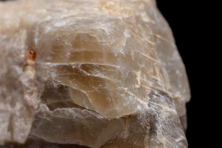 Macro mineral stone moonstone a black background close up