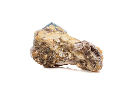 Macro mineral stone Corundum in rock a white background close up