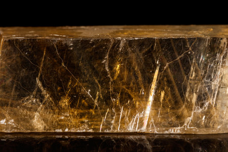 Macro mineral stone smoky quartz Rauch topaz on black background close up
