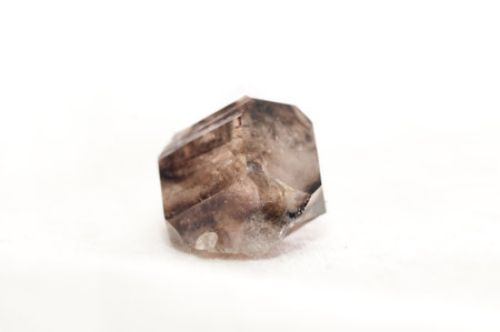 Macro mineral stone smoky quartz, rauchtopaz on a white background close up