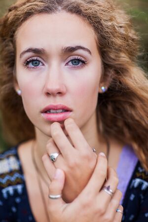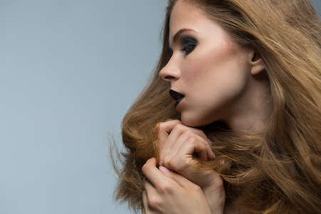 portrait of Beautiful young woman. sensual girl with make-up and curly blond Hair