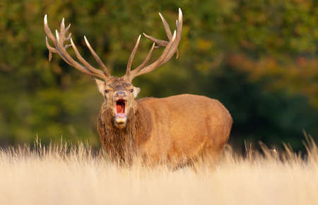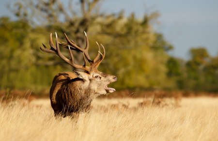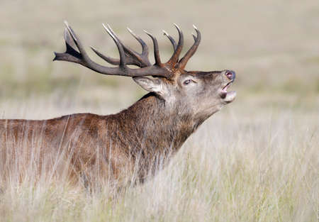 Red Deer (Cervus elaphus) stag bellowing during the rut
