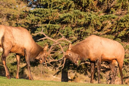 Pair of Bull Elk Fighting
