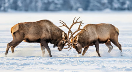 Shiras Moose Battling in Snow Majestic Wildlife Fight Winter Wilderness