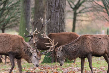 red stags rutting in bushy park