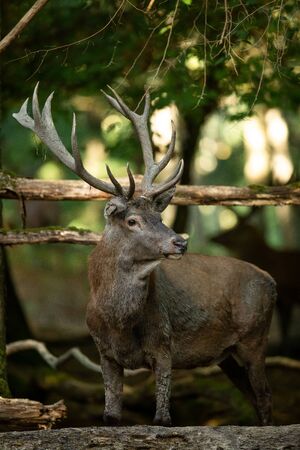 Magnificent red deer stag prowling during rut season